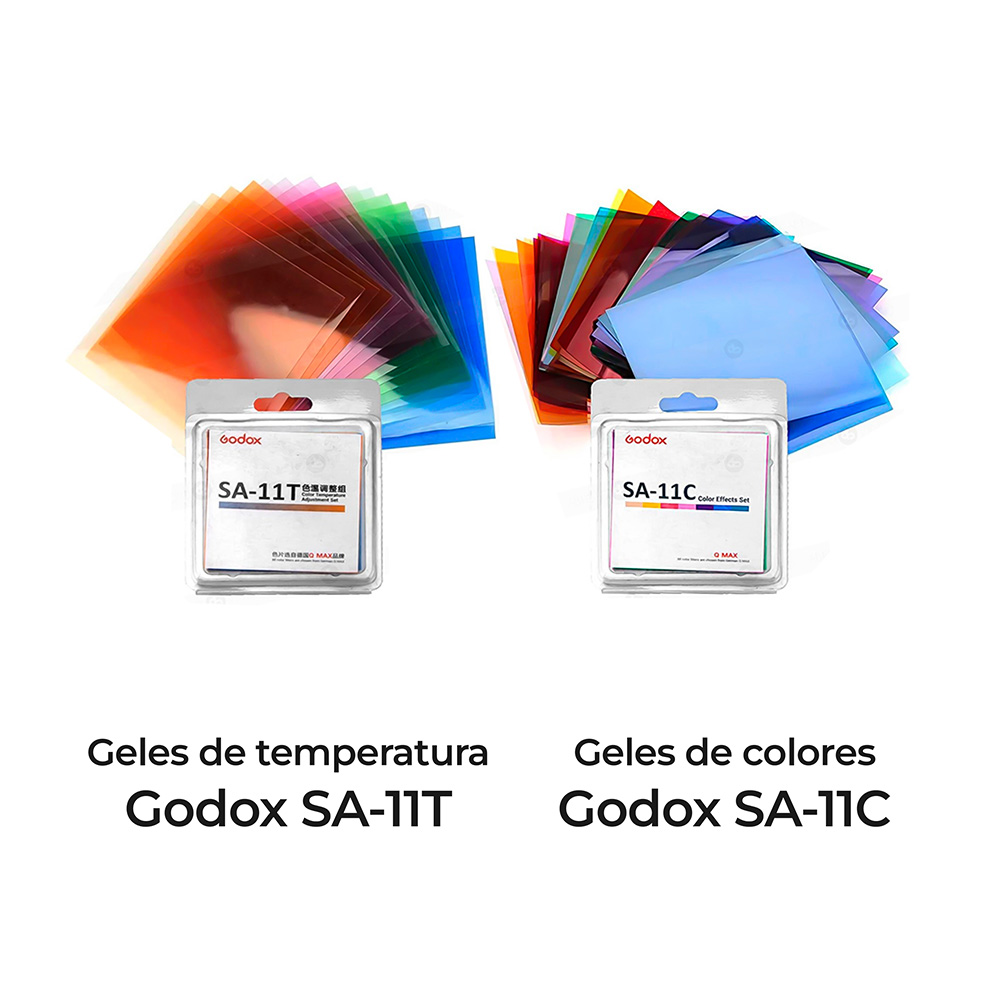 Juego de 16 geles correctores de color Godox SA-11T, para el sistema de proyección Godox SA. De 8 x 8 cm cada uno.
