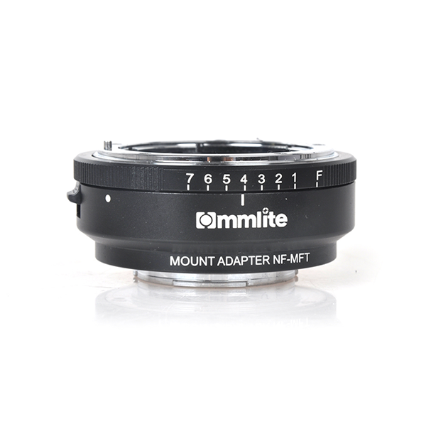 Este adaptador de montura de lente de Commlite permite utilizar una lente Nikon tipo G con montura F en una cámara con montura Micro Four Thirds. Para controlar la cantidad de luz que ingresa a una cámara cuando se combina con una lente, este adaptador de montura de lente incorpora un anillo de control de apertura.