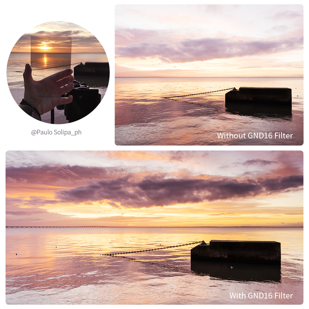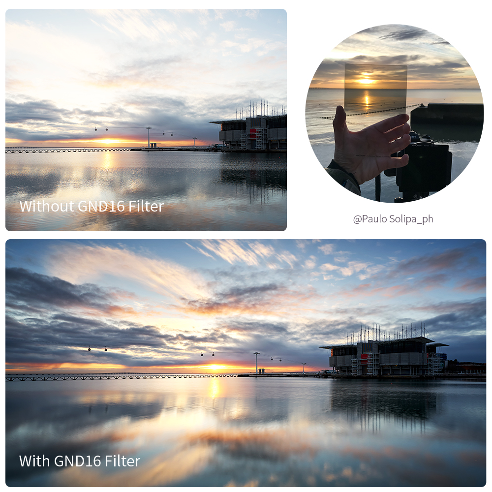 Permite seleccionar un área específica de la imagen para para aplicar el efecto de densidad neutra. Ideal para amaneceres y atardeceres. Sus 4 pasos con transición suave permiten tomar horizontes no regulares, como ciudades con edificios.