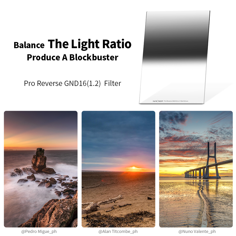 Filtro rectangular K&F Concept Densidad Neutra Graduado Inverso GND16 (4 pasos) de 100x150x2mm.