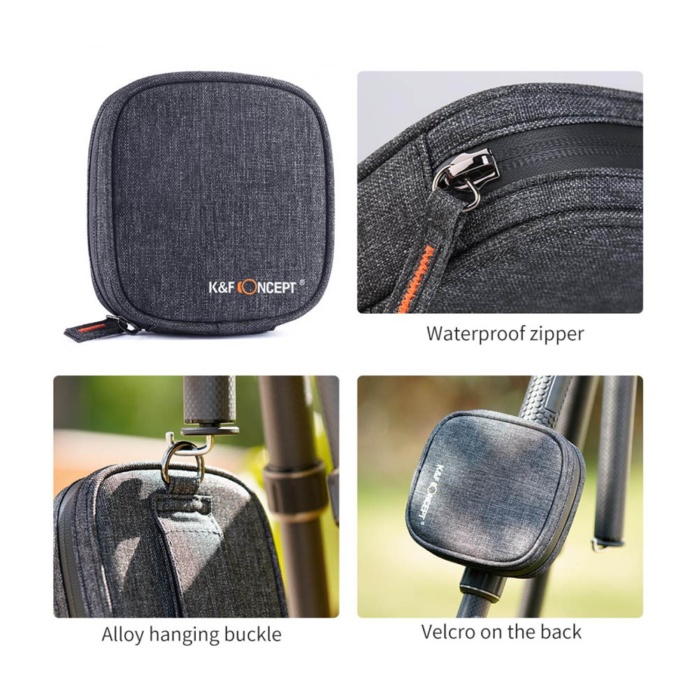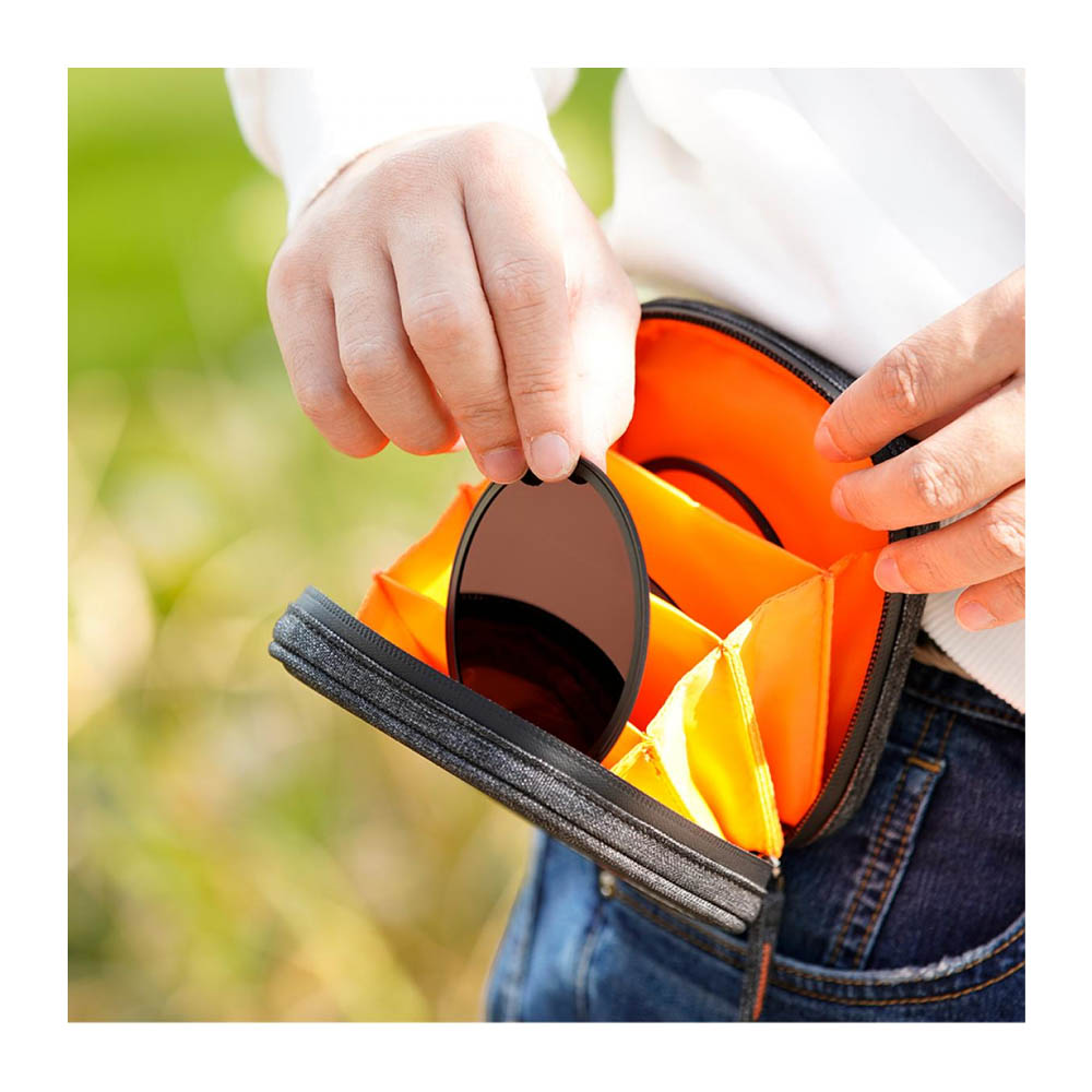El kit de filtros de lentes K&F Concept para fotografía profesional incluye filtro UV, filtro polarizador CPL, filtro de densidad neuronal (ND1000), anillo magnético y bolsa de filtro.