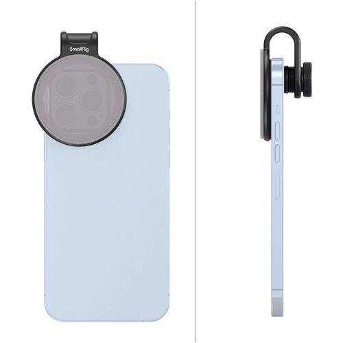 Instale un filtro de 52mm magnético a su celular utilizando este adaptador, que se adapta a la mayoría de celulares del mercado gracias a su sistema de acople por pinza regulable.