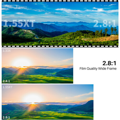 Los lentes anamórficos logran esto al presionar horizontalmente la imagen. Como este lente presiona la imagen en 1.55x, el campo visual horizontal va a incrementarse en un 58%, dando una relación de aspecto de 2.80:1, comparado con un lente tradicional, capaz de hacer 16:9.