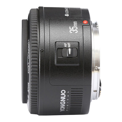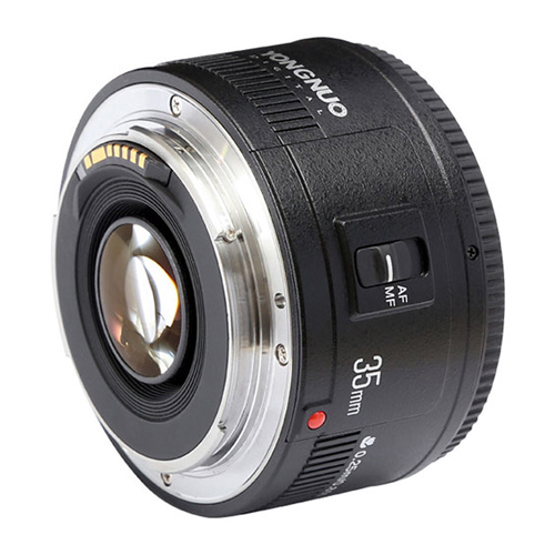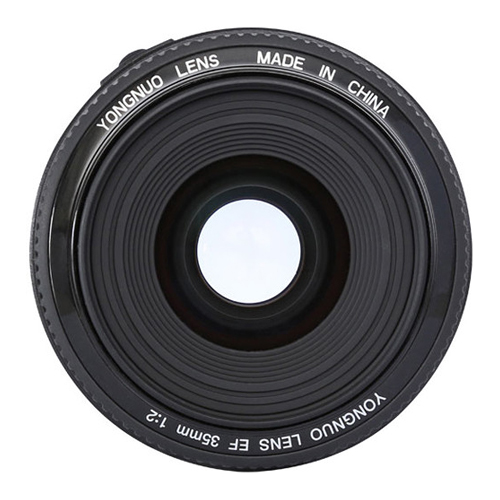 El lente Yongnuo YN35 de 35mm para CANON con apertura f/2.0, y capacidad de enfoque automático y manual.