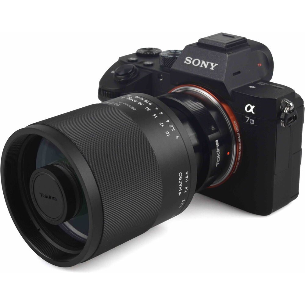Lente réflex Tokina SZX SUPER TELE 400mm F8 REFLEX MF, con largo focal de 400mm, y f/8 fijo de apertura, para cámaras Sony con montura E, Full Frame y sensores APS-C.