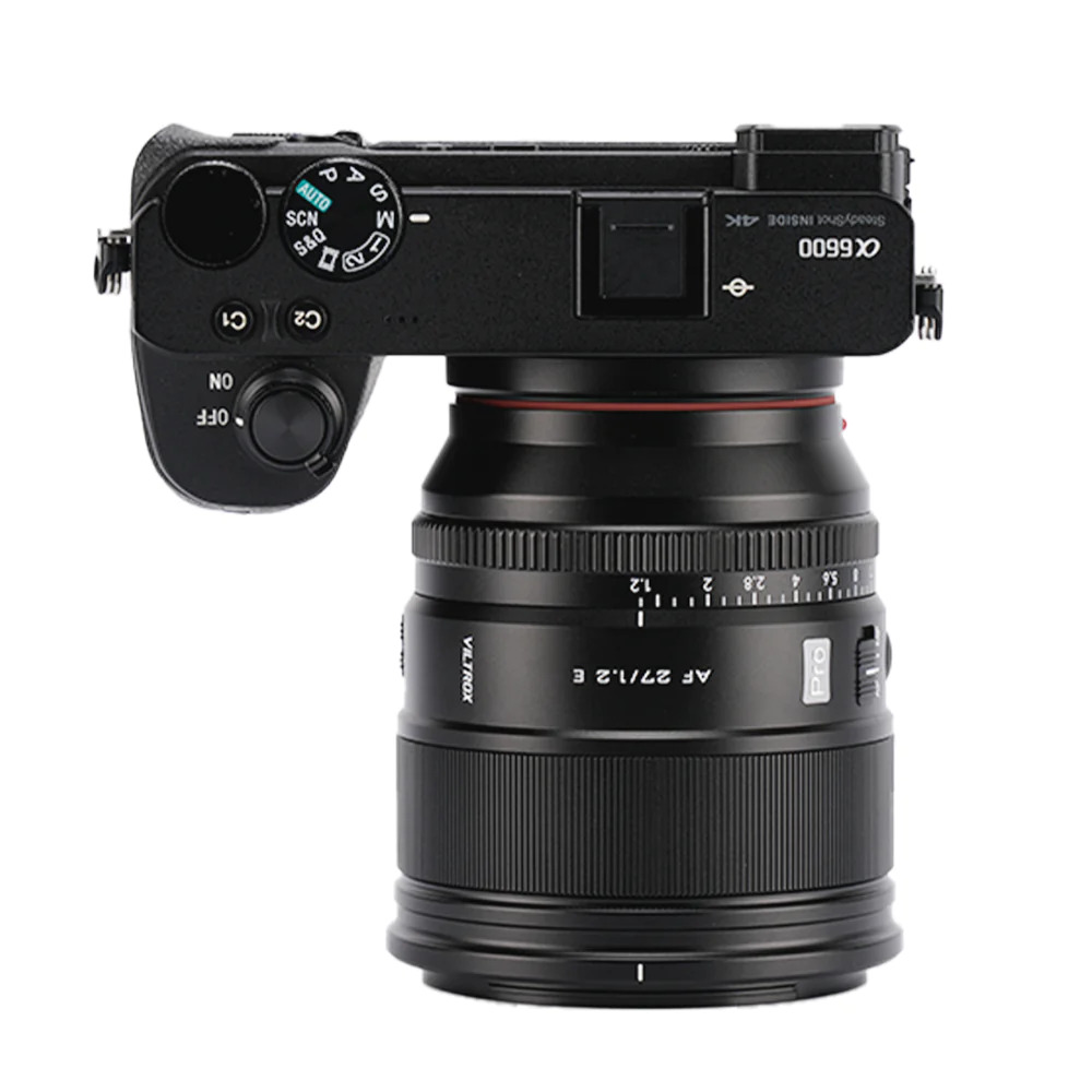 Lente Viltrox 27mm f/1.2 para cámaras Sony Mirrorless, montura E, sensor APS-C. Lente ultra rápido con apertura f/1.2 con largo focal ideal para retrato, que presenta un rendimiento de enfoque automático muy avanzado, un diseño óptico sofisticado y un manejo y confiabilidad profesionales.