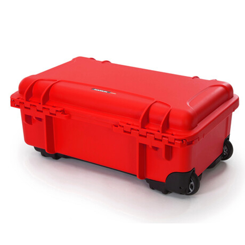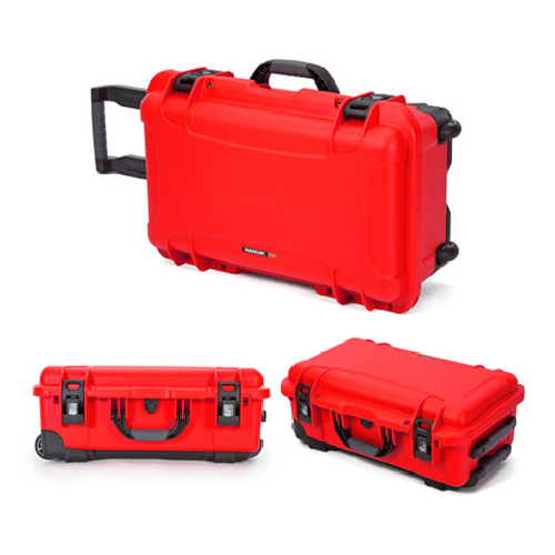 Maleta rígida Roja con ruedas y agarradera extensible Nanuk 935 con divisores acolchados y organizador superior, de 28.5 litros de capacidad. Medias perfectas como Carry-On en la mayoría de las aerolíneas.