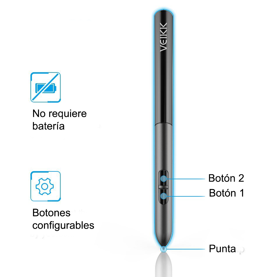 Su lápiz no requiere batería, e incorpora 2 botones configurables, y punta reemplazable.