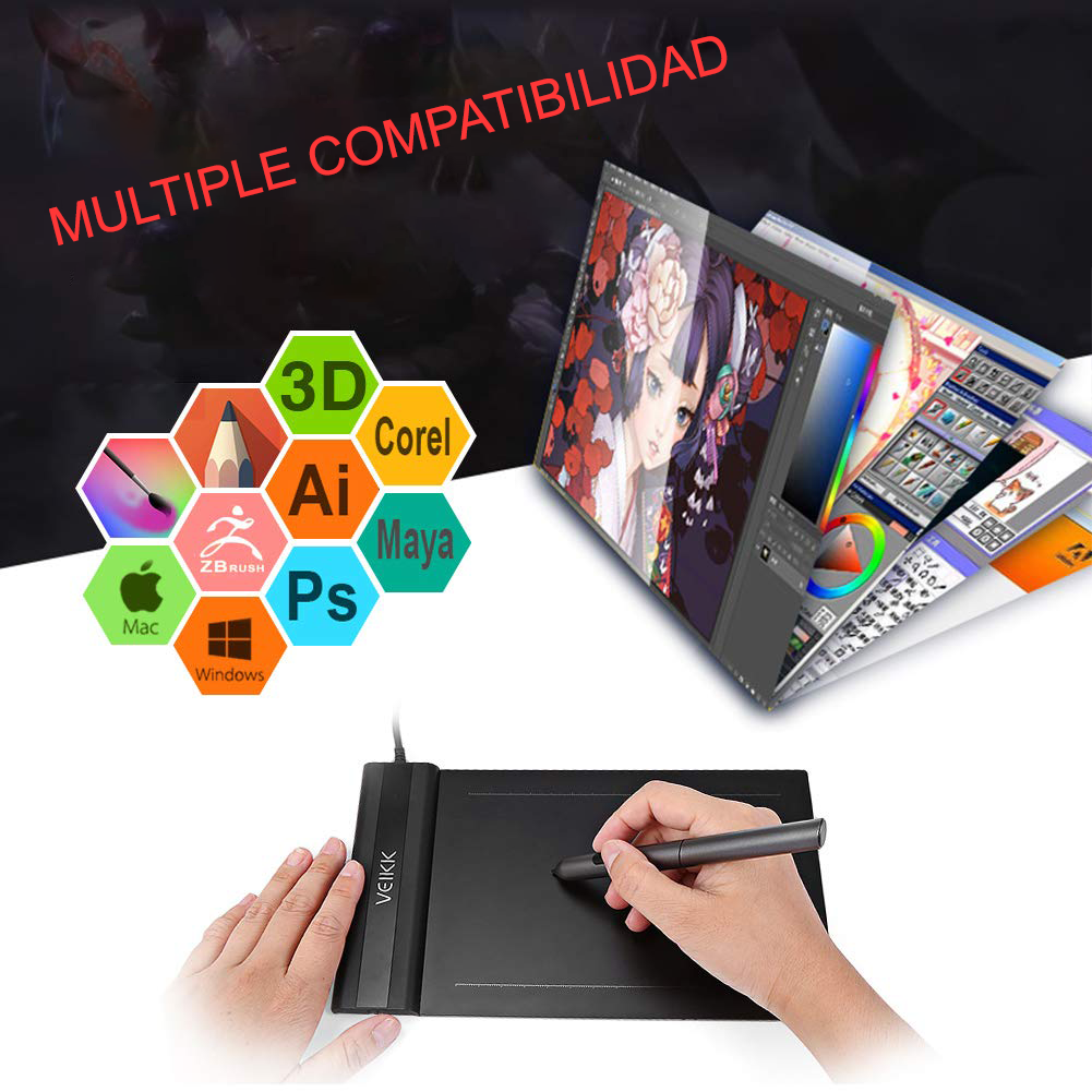 - Compatible con Photoshop, Illustrator, SAI, Clip Studio, SketchBook Pro, MediBang, Painter, Krita y más…