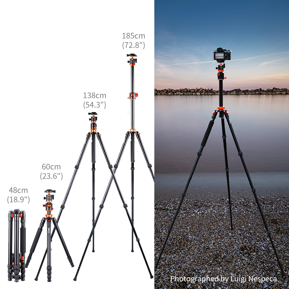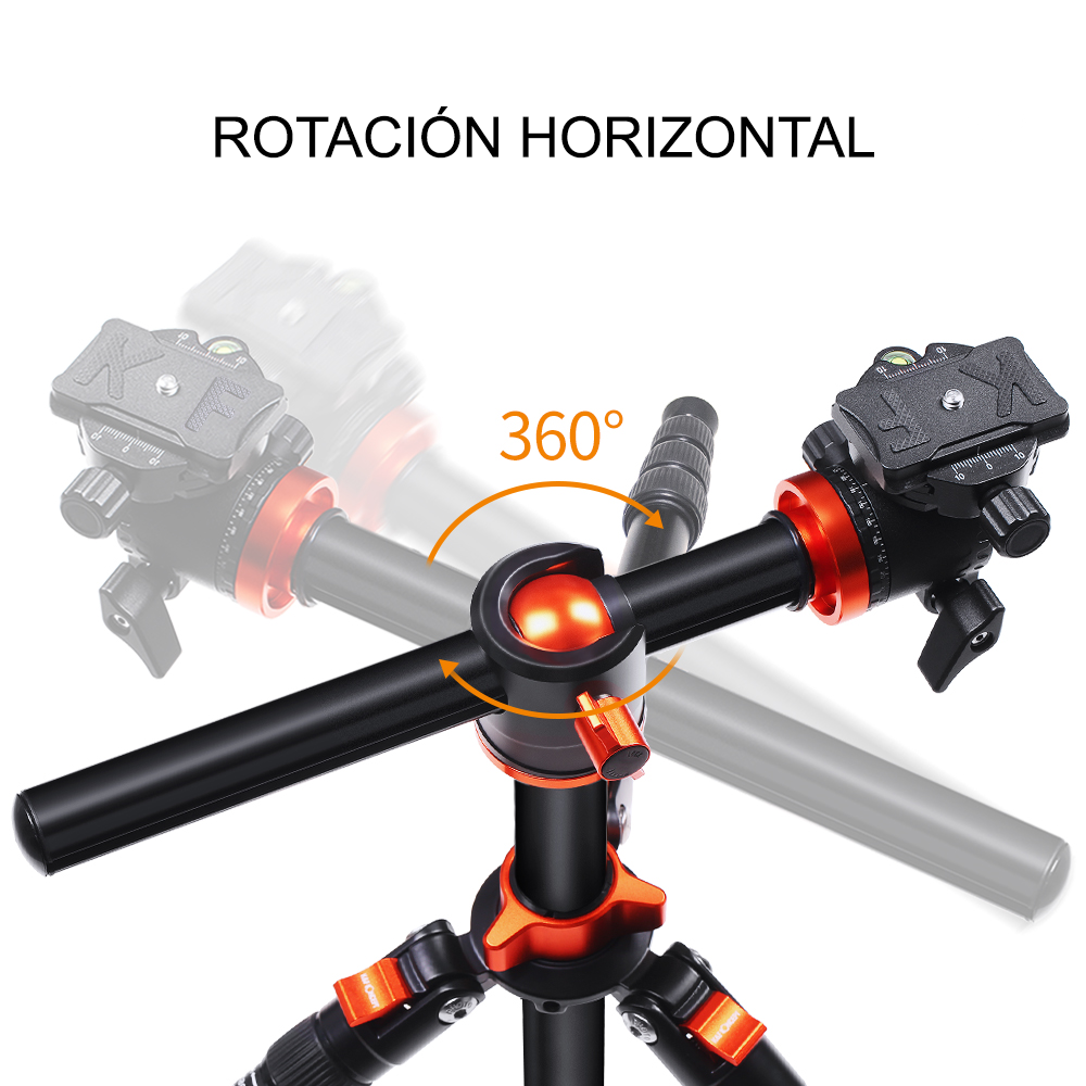 Fabricado en aluminio, lleno de características especiales, ideal para viajes. Sus patas puedes ser configuradas en diferentes ángulos para ser utilizado en terrenos irregulares. Su eje central puede ser invertido para tomas al ras del piso. Su eje central puede ser posicionado horizontalmente para tomas cenitales. Una de sus patas puede ser convertida en un practico monopod o bastón de excursiones.