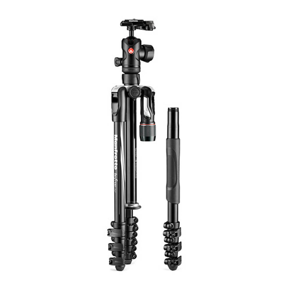 El trípode de aluminio Manfrotto Befree 2N1 todo en uno con rótula de bola 494 es un soporte de 4 secciones con un sistema de patas con bloqueo de palanca que se desbloquea con facilidad y permite que el trípode alcance una altura máxima de 150 cm. La extensión independiente de las patas permite se adapta a terrenos irregulares y permite que el trípode de 3,7 libras tenga una altura mínima de 40cm. Cuando esté listo para ir a su próximo destino, las patas se cierran al revés hasta una longitud plegada de 40.