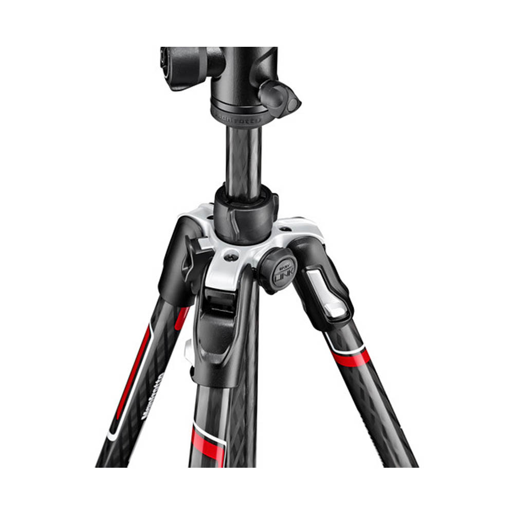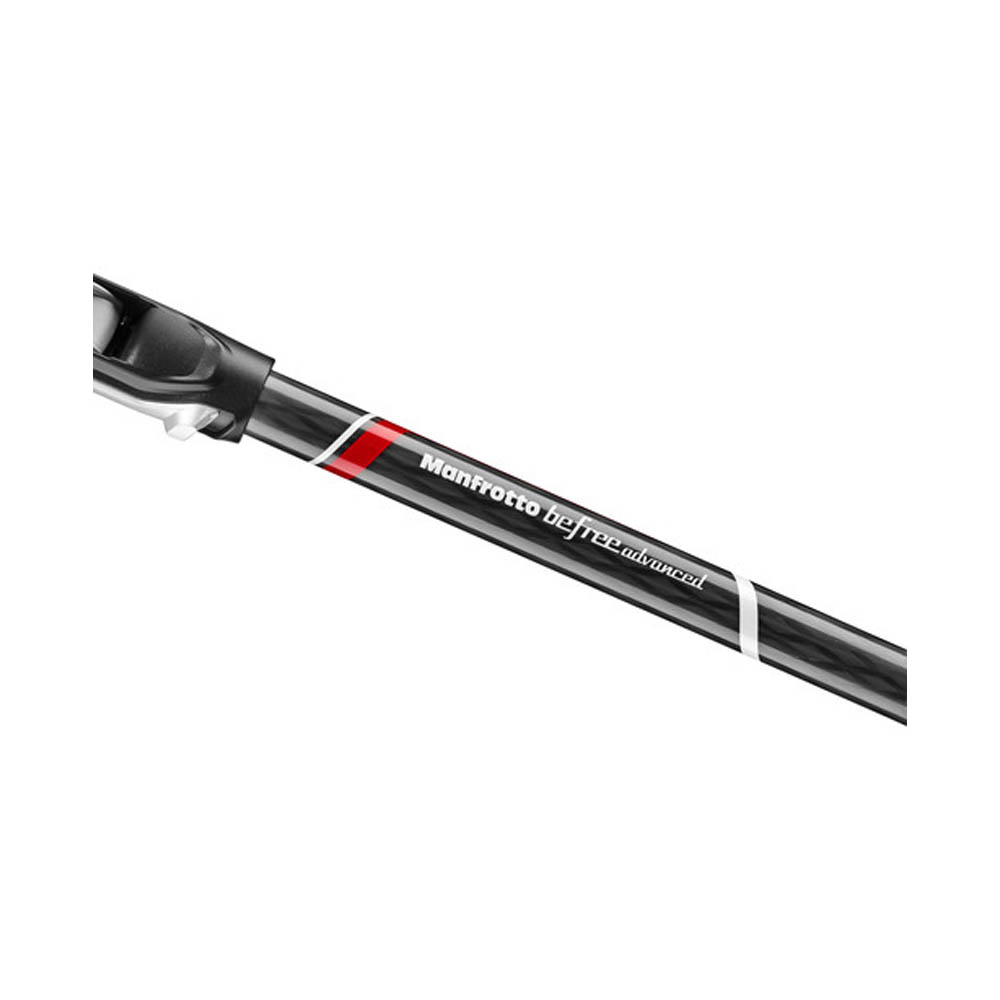 Cada pata de Befree Advanced se compone de cuatro secciones, que se pueden ajustar y asegurar en segundos gracias a los cierres giratorios M-lock que funcionan con un simple giro de 90°. Un selector de tracción lateral le permite configurar la pierna en tres configuraciones de ángulo diferentes, lo que permite disparar en ángulo bajo con solo presionar un botón. Complementando las patas hay una rótula central igualmente resistente, que ofrece una perilla dedicada para el movimiento panorámico, así como una perilla de control de fricción para un control preciso de la tensión durante el uso. El elemento final es una placa de liberación rápida, que ofrece compatibilidad dual para sistemas compatibles tipo RC2 y Arca, excepto los cabezales de trípode Manfrotto 804-3W y MH804-3W.