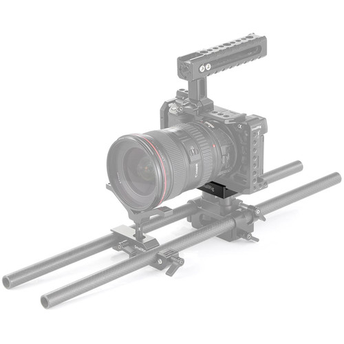 La galleta se acopla a la cámara por pernos de 1/4″-20 y 3/8”-16. El conjunto se acopla al rig, o un trípode por roscas 1/4”-20 y 3/8”-16 en su parte inferior.