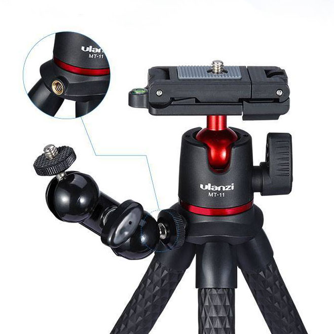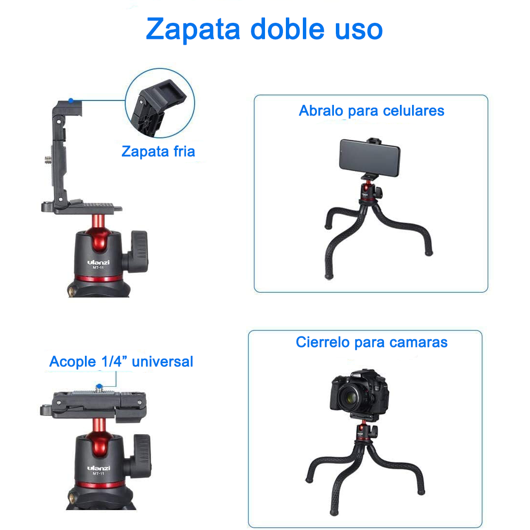 Mini trípode tipo pulpo Ulanzi MT-11 para cámaras DSLR y celulares, con capacidad de 2 kg de carga.