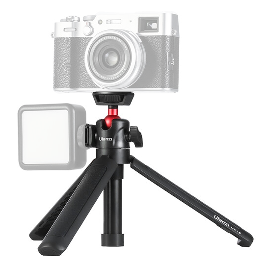 Mini trípode extensible Ulanzi MT-16 para cámaras DSLR, celulares, GoPro, con capacidad de 1.5 kg de carga, y zapata fría lateral para otros accesorios.