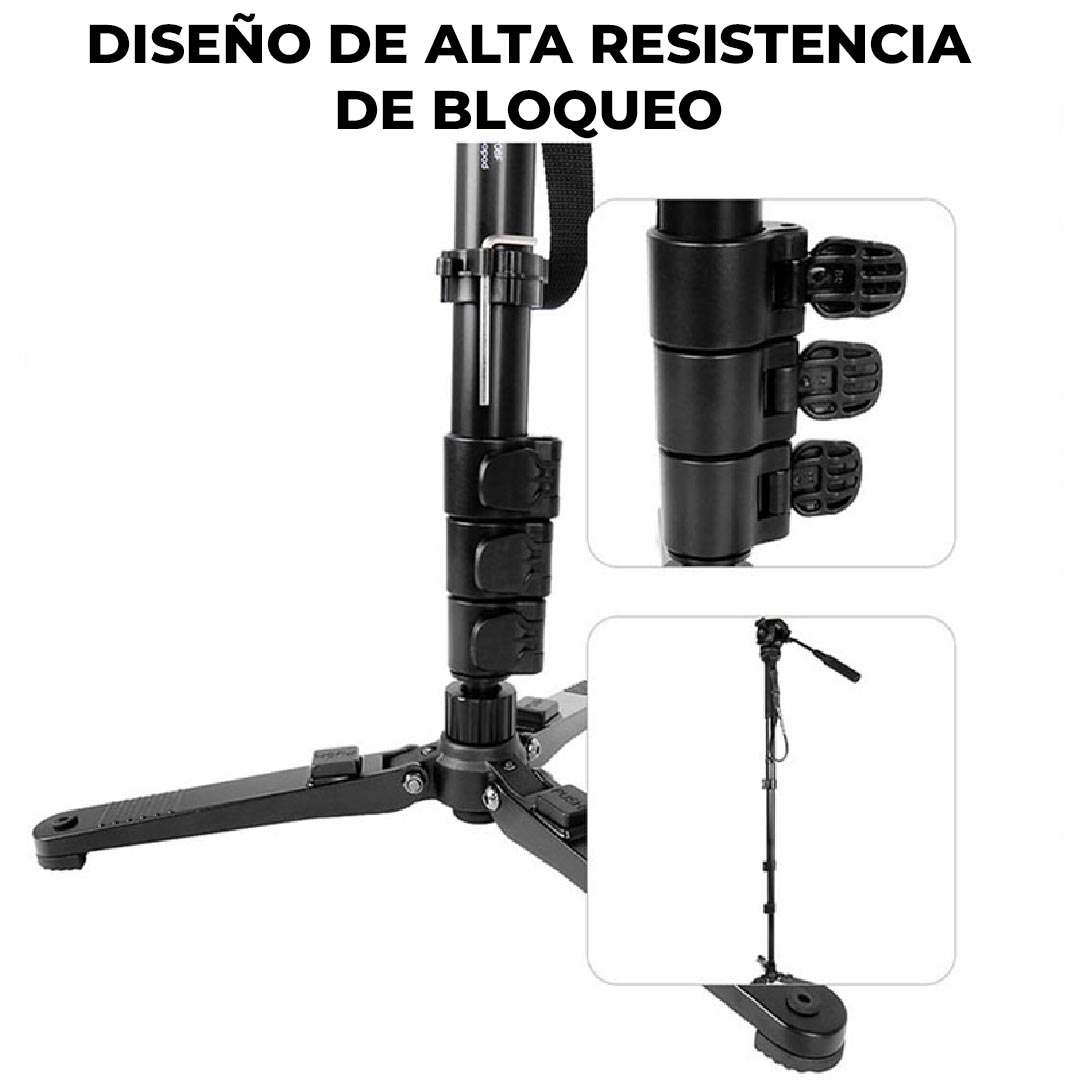 El monopie profesional Kingjoy M3+MP208F+VT-1510 está equipado con un cuerpo de aluminio magnesio, que asegura una gran resistencia y ligereza con una carga útil máxima de 8 kg. 4 secciones plegables permiten levantar el modelo a una altura de hasta 1,55cm.