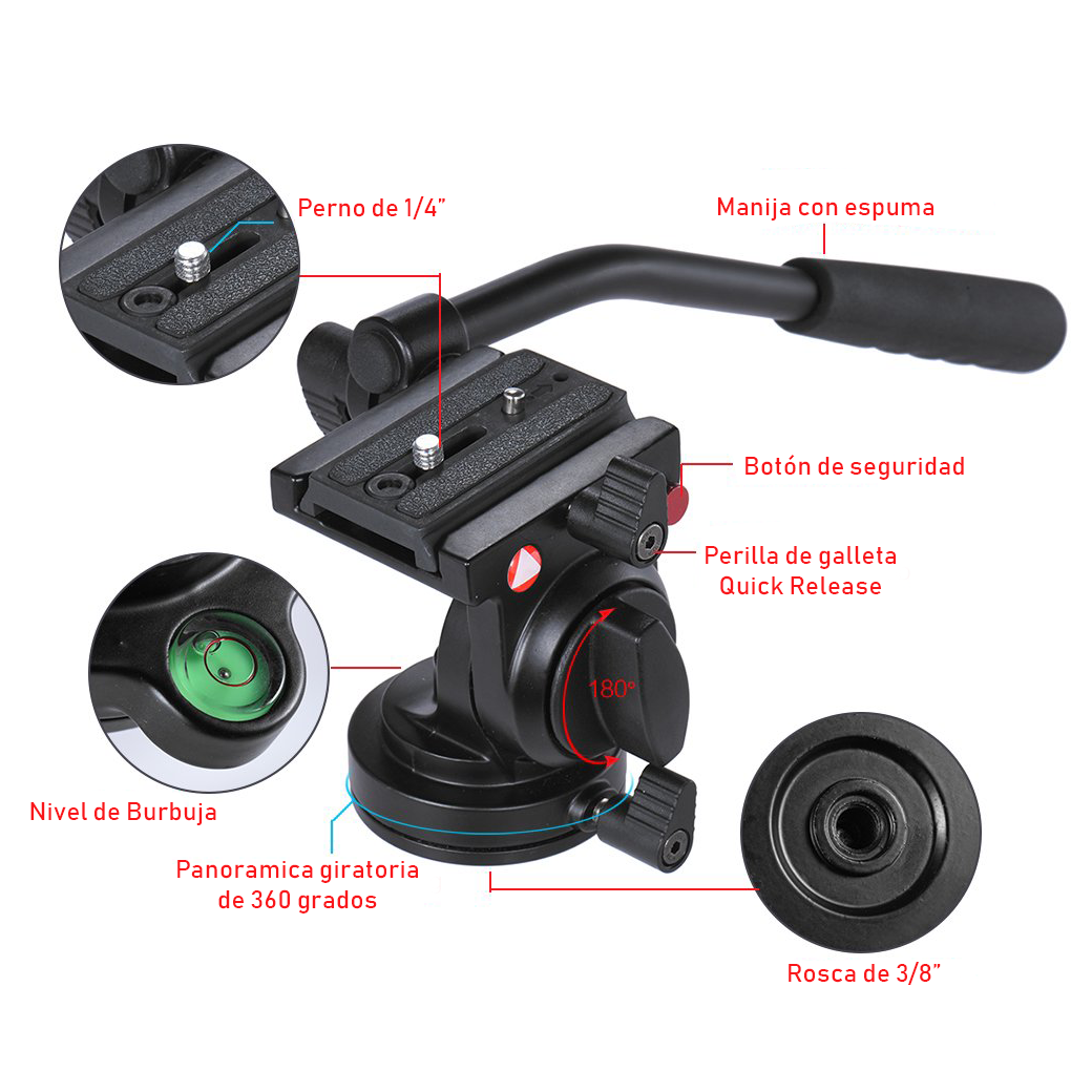 Monopod Monopie profesional KingJoy MP3008 + KH6750, con cabeza fluida en dos ejes, capacidad de carga de 5 kg, y 1.7 metros de altura máxima.