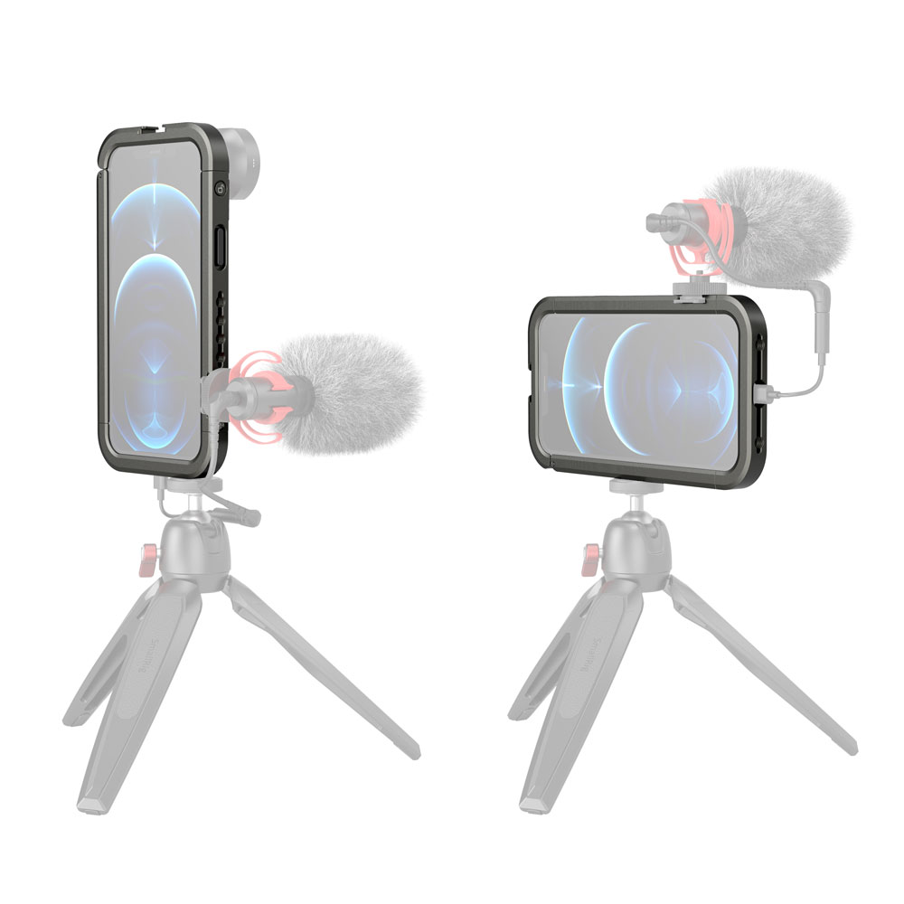 Jaula de aluminio Pro diseñada para el Iphone 12, da seguridad mientras posibilita el acceso a la funcionalidad completa del celular. Ofrece adicionalmente la posibilidad de montar accesorios en su dispositivo.