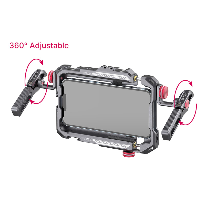 Sus agarraderas desmontables pueden ser giradas 360 grados, y pueden ser utilizadas en horizontal y vertical, para encontrar la posición de grabación correcta.