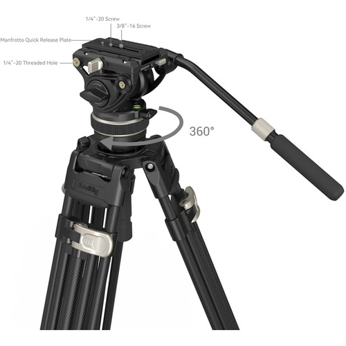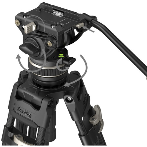 El cabezal fluido es una característica destacada de este trípode, ya que te permite usar la placa de liberación rápida estilo Manfrotto incluida o la placa de liberación rápida original DJI RS 2, RS 3 o RS 3 Pro con solo presionar un interruptor. La rótula de media bola de 75 mm te permite girar 360° e inclinar +90/-60°, lo que te brinda una amplia gama de opciones para obtener el ángulo perfecto.