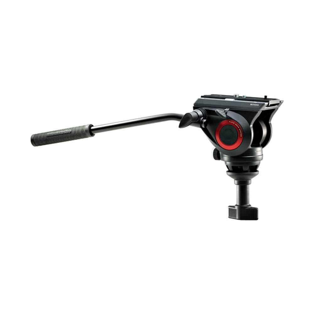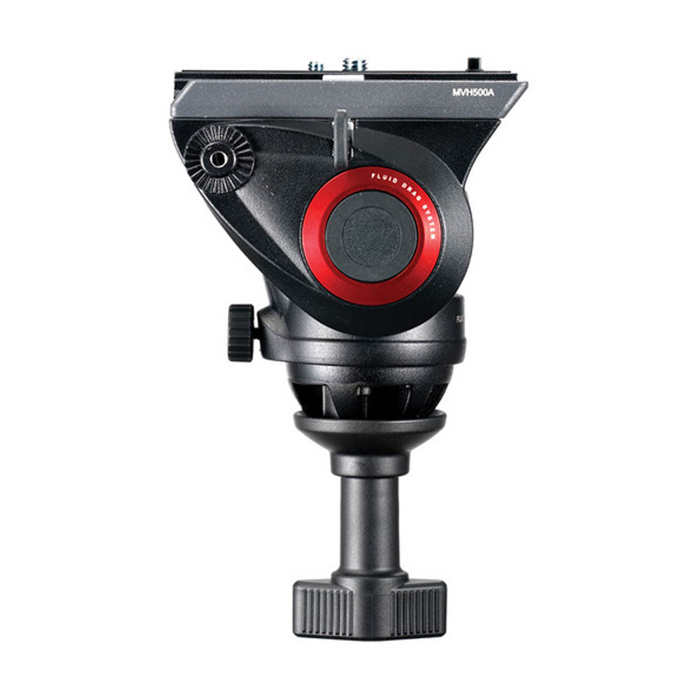 El cabezal de vídeo con arrastre fluido Manfrotto MVH500A con trípode MVT502AM y bolsa de transporte cuenta con un cabezal fluido con una plataforma amplia para soportar el factor de forma HDSLR y una media bola de 60 mm para una nivelación rápida sin ajustar las patas. El cabezal soporta una carga de peso máxima de 17,6 libras y tiene un contrapeso con resorte preestablecido incorporado de 5,3 libras. Cuenta con un rango de inclinación de -70°/+90° y proporciona una rotación panorámica de 360°. El cabezal también cuenta con un sistema de bloqueo lateral para la placa deslizante de liberación rápida, un asa para sartén y un nivel de burbuja integrado.