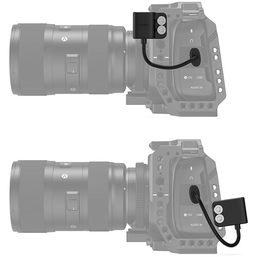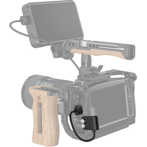 La parte hembra del adaptador se adapta al rig o jaula de cámara con 2 tornillos de 1/4″-20. Con este adaptador se asegura el puerto de la cámara contra desconexiones forzosas o repentinas.