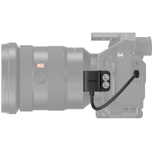 La parte hembra del adaptador se adapta al rig o jaula de cámara con 2 tornillos de 1/4″-20. Con este adaptador se asegura el puerto de la cámara contra desconexiones forzosas o repentinas.