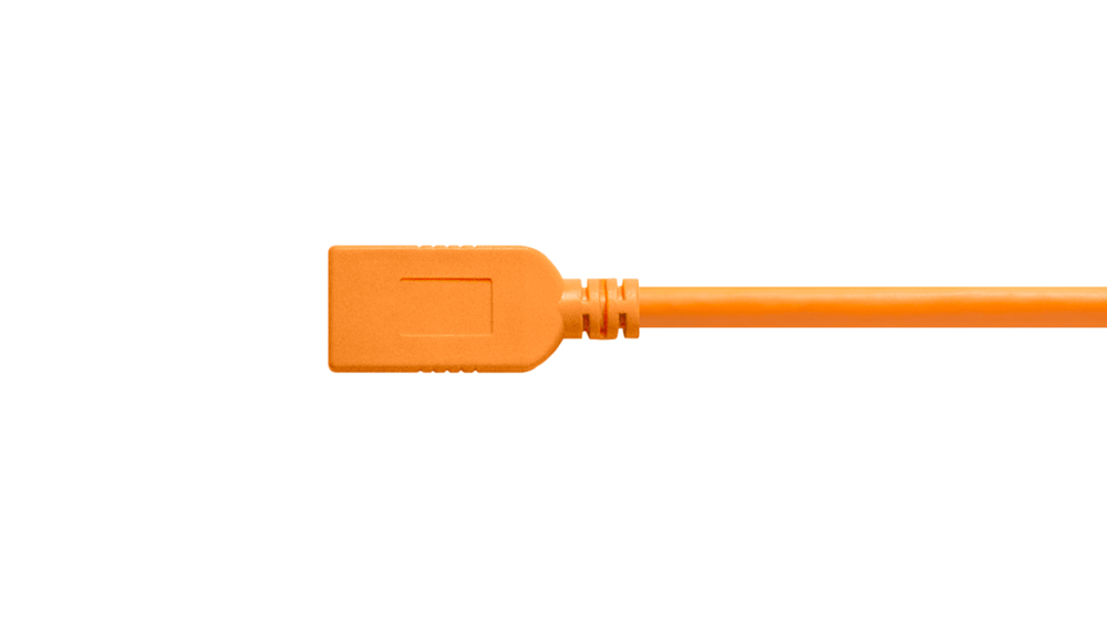 Cable Tether Tools TetherPro Extensión USB-C Macho a USB-A 3.0 Hembra, naranja, de 4.6 metros de largo.