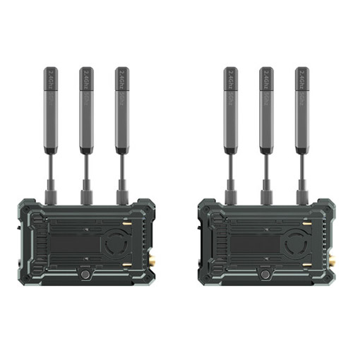 Agregue transmisión de video inalámbrica 4K30 a su producción utilizando el sistema de transmisión de video inalámbrico Pyro S 4K HDMI/SDI de Hollyland. El sistema incluye un transmisor inalámbrico, un receptor inalámbrico, siete antenas, un adaptador USB-C, un adaptador de corriente CC y un soporte adaptador de zapata ajustable. El transmisor proporciona entradas HDMI y SDI y presenta una latencia extremadamente baja de 50 ms que acepta transmisión con línea de visión desde hasta 1300′ de distancia hasta el receptor incluido. Cuando se utiliza el modo de transmisión con hasta cuatro receptores y dos dispositivos móviles, el sistema admite hasta 650 pies de distancia. El receptor emite a HDMI y SDI.